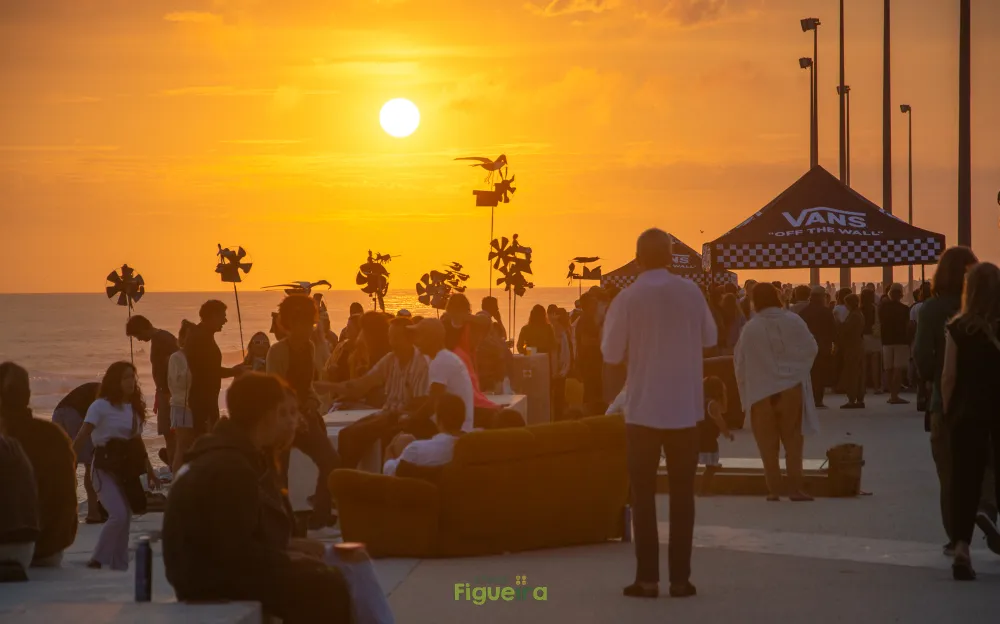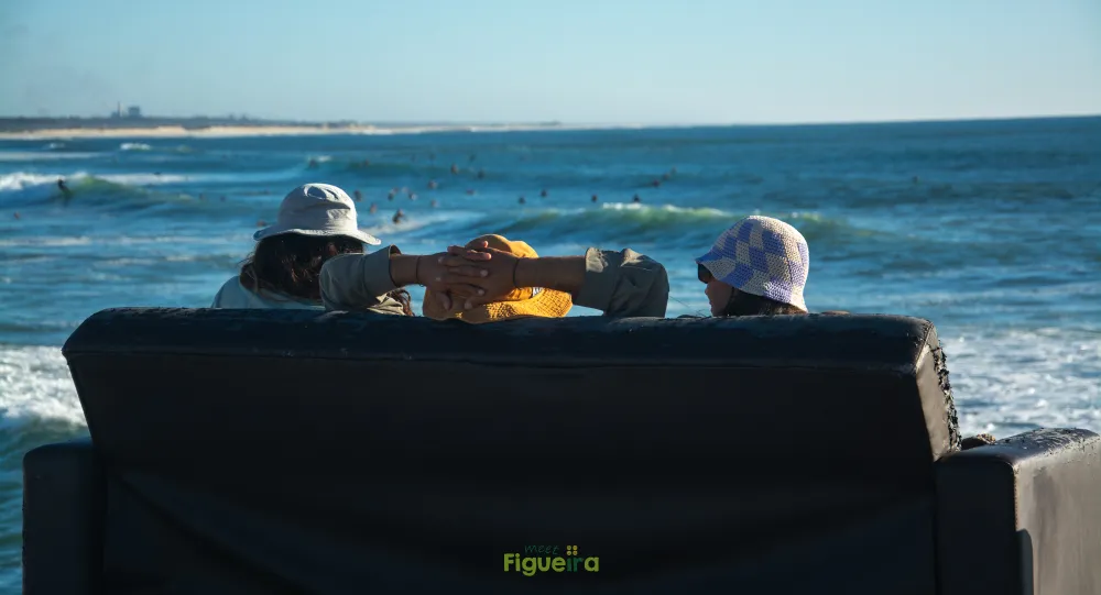 Durante o dia, o ambiente criativo toma conta da Praia do Cabedelo. Vais chocar de frente com concertos ao ar livre, performances artísticas, sessões de tatuagens, cortes de cabelo e, claro, os icónicos sofás no molhe, que já são uma imagem de marca da paisagem da Figueira da Foz por esta altura do ano.