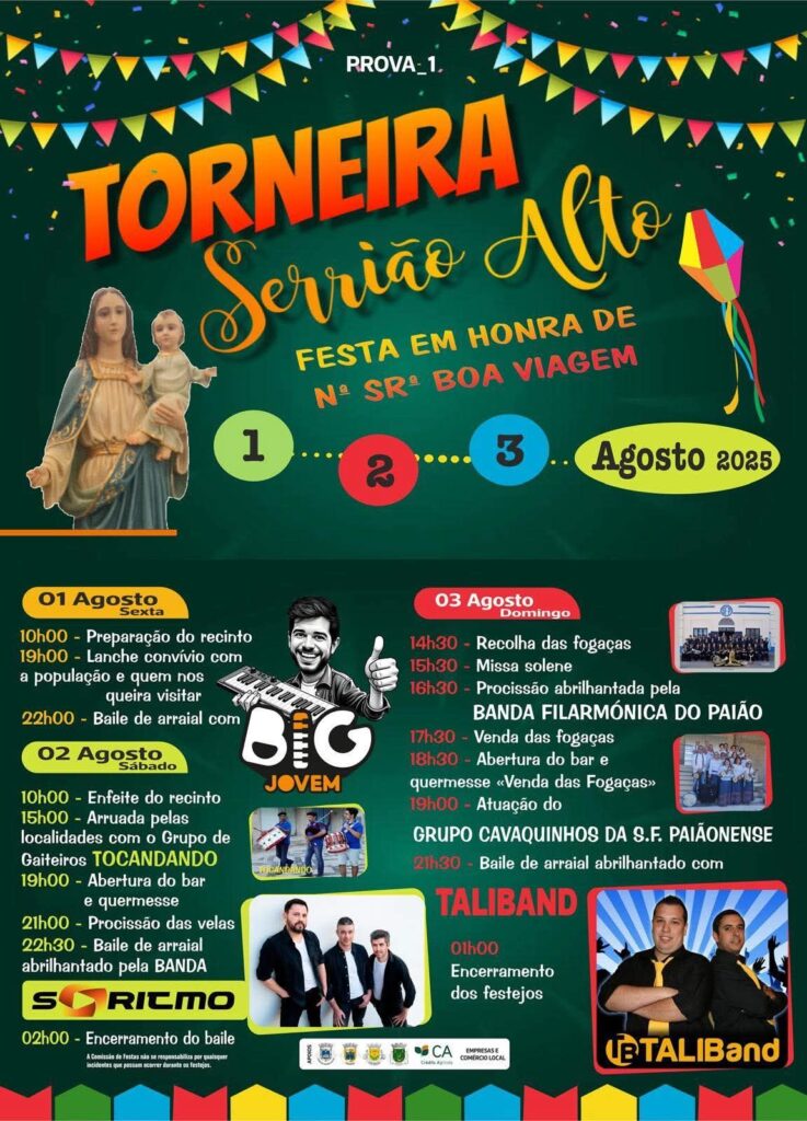 Até dia 3, domingo, o lugar da Torneira, no Serrião Alto (freguesia de Paião), volta a celebrar a tradicional Festa em Honra de Nossa Senhora da Boa Viagem. O programa inclui arraiais, música popular, gastronomia, procissões e outros momentos de convívio comunitário.