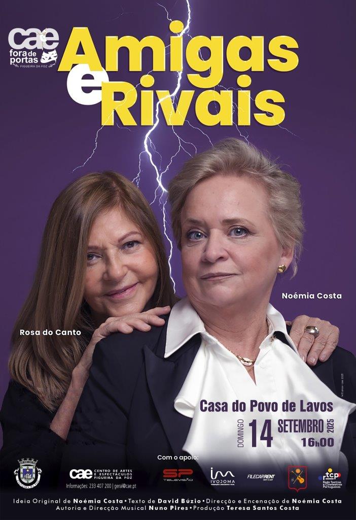 O programa CAE Fora de Portas continua a levar cultura às freguesias do concelho da Figueira da Foz, e no próximo dia 14 de setembro, domingo, pelas 16h00, é a vez da Casa do Povo de Lavos acolher a peça “Amigas e Rivais”, protagonizada pelas consagradas atrizes Noémia Costa e Rosa do Canto.