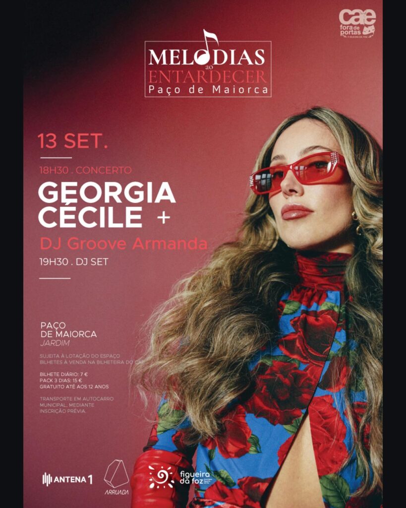 O programa inicia-se às 18h30, com o concerto da cantora Georgia Cécile, uma das vozes mais promissoras do jazz europeu. Segue-se, às 19h30, um DJ set de Groove Armanda, encerrando em festa esta edição do ciclo que voltou a transformar o Paço de Maiorca num palco ao ar livre de excelência.