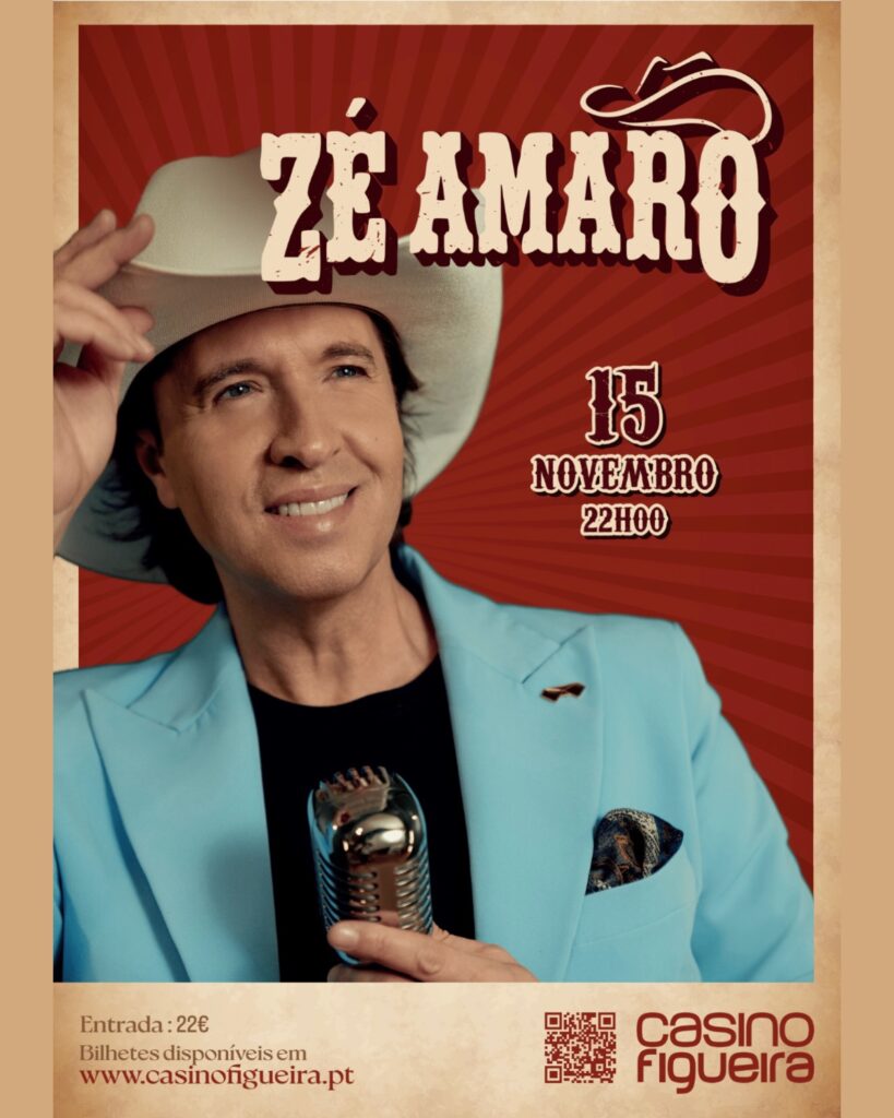 Sábado, dia 15, pelas 22h00, o “Cowboy Português” está de volta para uma noite inesquecível: Zé Amaro sobe ao palco do Casino Figueira para um espetáculo cheio de emoção, ritmo e grandes sucessos que marcaram a sua carreira. Não faltarão temas como “Vai com Deus”, “Cowboy Apaixonado”, “Casinha Branca”, “Cavaleiro Solitário” e muitos outros êxitos que fazem parte da banda sonora de todos nós.