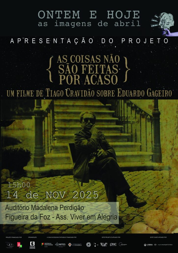 Sexta-feira, dia 14, pelas 15h00, o Auditório Madalena Perdigão, na Biblioteca Municipal da Figueira da Foz, acolhe a apresentação do projeto “Ontem e Hoje: As Imagens de Abril”, que inclui a exibição do documentário “As Coisas Não São Feitas Por Acaso”, realizado por Tiago Cravidão e dedicado ao fotojornalista português Eduardo Gageiro.O filme propõe uma reflexão sobre o olhar singular de Gageiro e a sua forma de interpretar as transformações sociais e políticas em Portugal e no mundo ao longo das últimas seis décadas. A narrativa acompanha a preparação do seu mais recente livro e revisita algumas das suas imagens mais icónicas, nomeadamente as que documentam a Revolução dos Cravos, símbolo maior da história contemporânea portuguesa.
