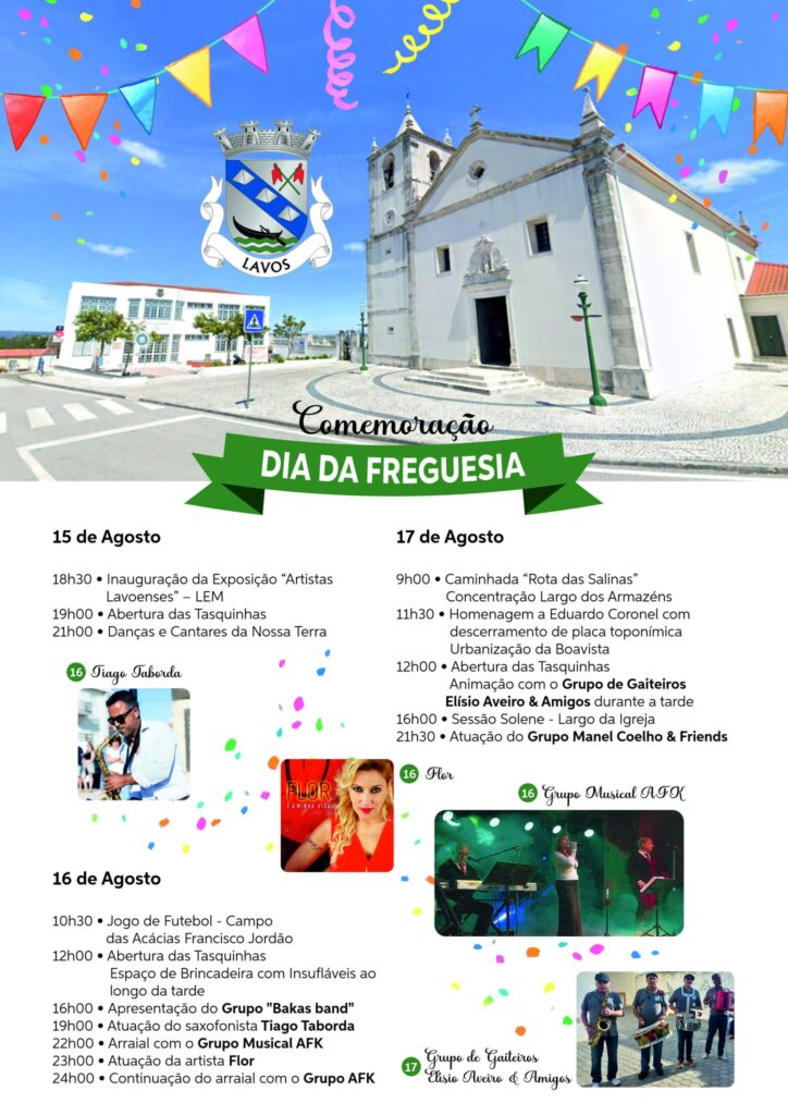 De 15 a 17 de agosto, Lavos estará em festa para assinalar o seu Dia da Freguesia, com um programa diversificado que inclui música ao vivo, tasquinhas, homenagens e muita animação popular.