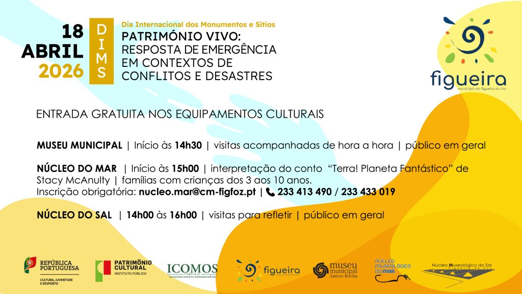 Dia 18, sábado, o Município da Figueira da Foz assinala o Dia Internacional dos Monumentos e Sítios, este ano subordinado ao tema “Património Vivo: Resposta de Emergência em Contextos de Conflitos e Desastres”, com iniciativas no Museu Municipal Santos Rocha (MMSR), Núcleos Museológicos do Mar e do Sal, e Mosteiro de Santa Maria de Seiça, e entrada gratuita.