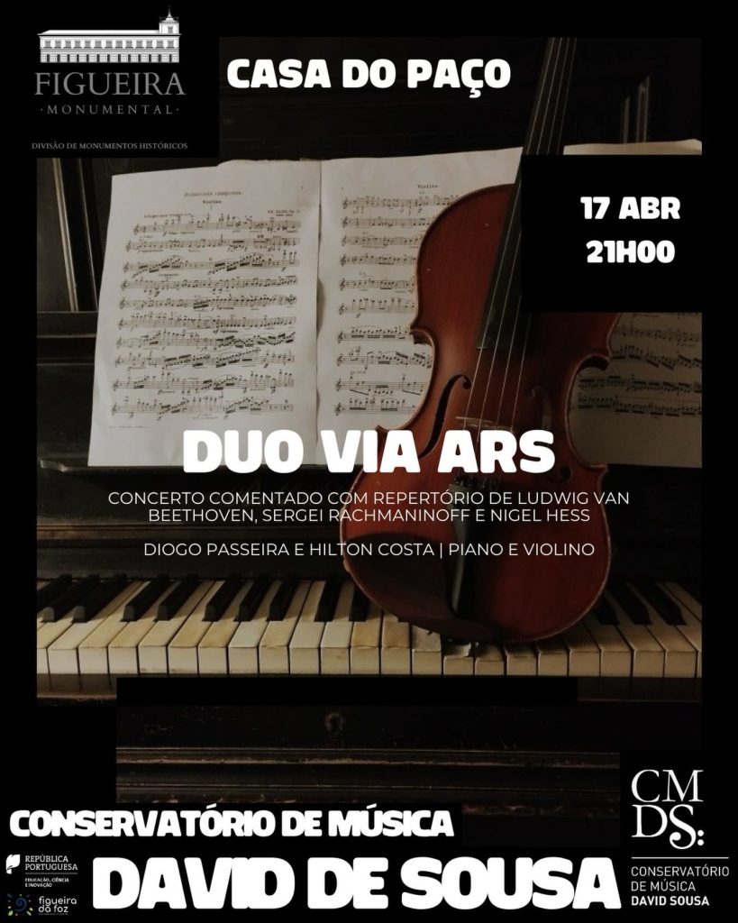 – Sexta-feira_17 de abril_21h00: concerto comentado com a atuação do Duo Via Ars, constituído pelo pianista Diogo Passeira e pelo violinista Hilton Costa. O mesmo propõe uma experiência musical enriquecida por momentos de contextualização e diálogo com o público, permitindo uma compreensão mais profunda das obras interpretadas. O repertório inclui peças de Ludwig van Beethoven, Sergei Rachmaninoff e Nigel Hess, convidando os espectadores a uma viagem sonora marcada pela expressividade e pela diversidade estética.