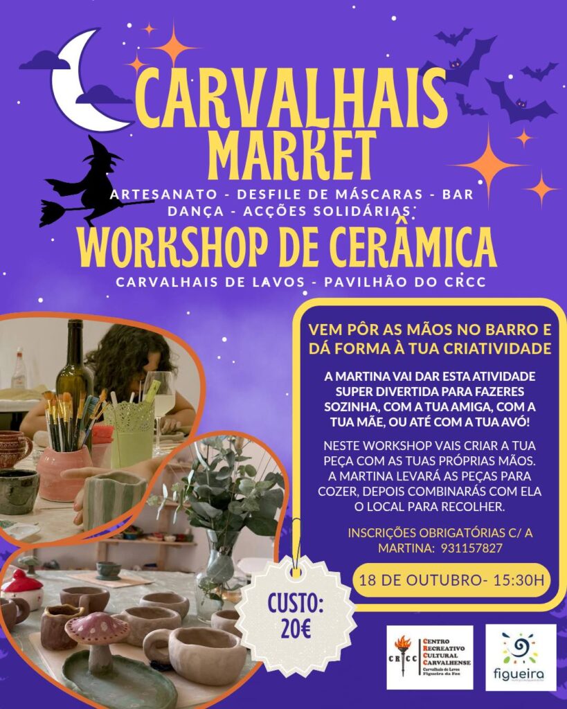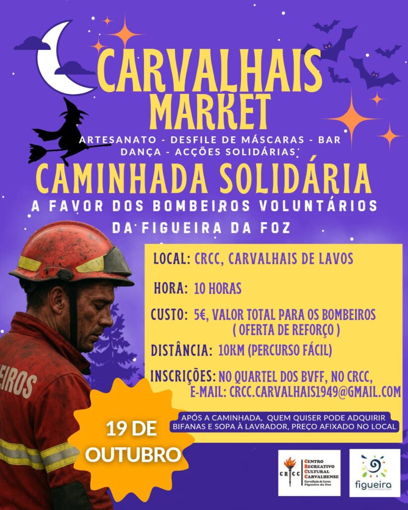 Sábado e domingo, dias 18 e 19, o pavilhão do Centro Recreativo Cultural Carvalhense recebe mais uma edição do Carvalhais Market. São mais de 30 expositores entre gastronomia, artesanato, bijuteria, cerâmica, entre outros. Este Mercado tem também várias atividades dirigidas aos mais novos e uma caminhada solidária para com os Bombeiros Voluntários da Figueira da Foz.