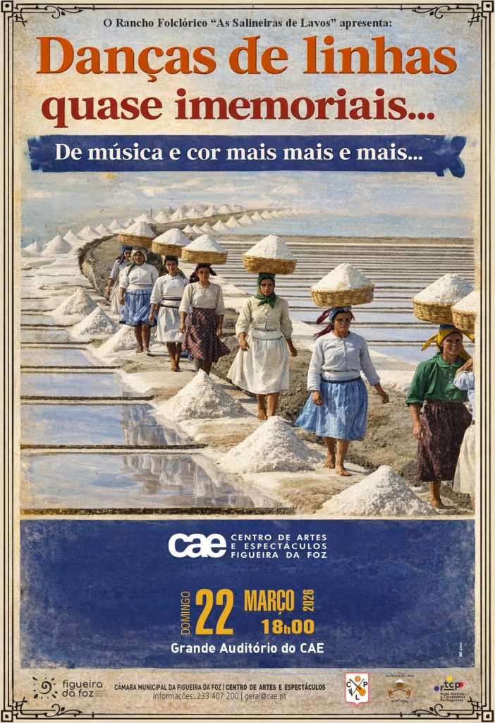 O Rancho Folclórico As Salineiras de Lavos apresenta, domingo, dia 22, pelas 18h00, no Grande Auditório do Centro de Artes e Espectáculos da Figueira da Foz, o espetáculo “Danças de Linhas Quase Imemoriais…”.