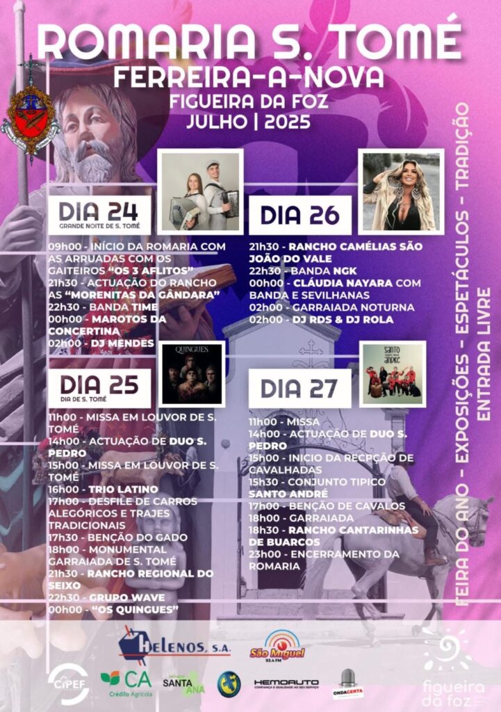 Até domingo, dia 27, a freguesia de Ferreira-a-Nova, no concelho da Figueira da Foz, volta a ser palco de uma das maiores e mais antigas romarias da região Centro: a Romaria de São Tomé, cuja origem remonta ao século XIII.