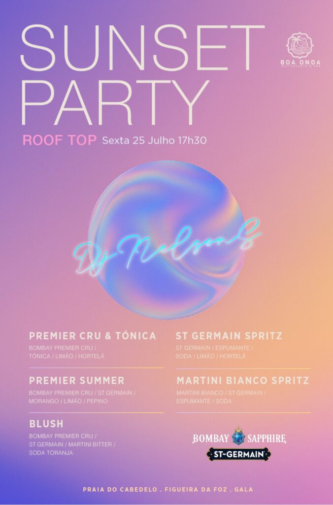 Sexta-feira, dia 25, a partir das 17h30, no Boa Onda, na Praia do Cabedelo, há Sunset Party! Depois da praia, aproveite e desfrute do roof top com boa música, boa companhia e uma bela paisagem!