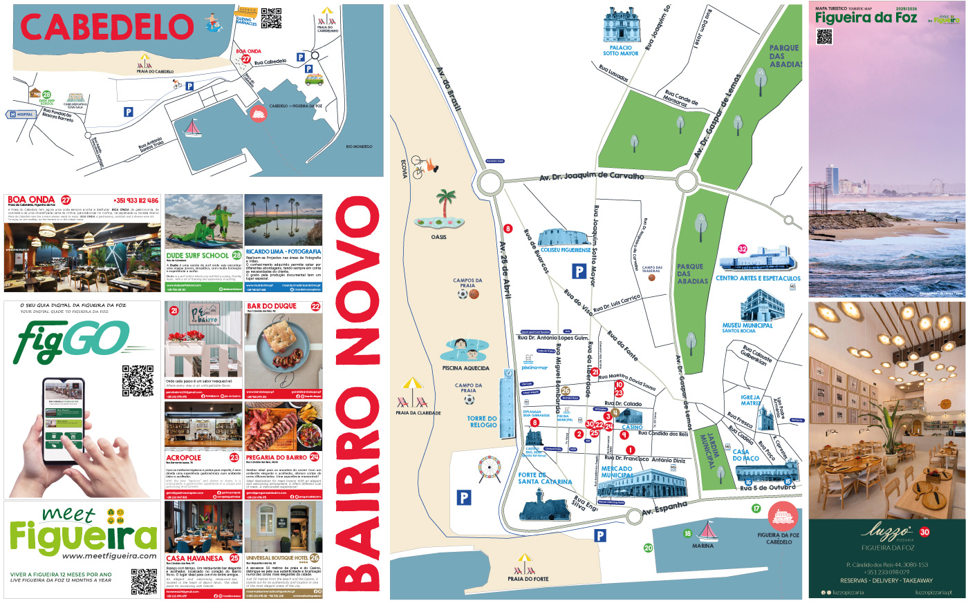 Todos os pontos de interesse do concelho, no mais completo mapa da Figueira da Foz, com fotos, descrições e localização de: praias, miradouros, zonas verdes, património classificado, equipamentos municipais, equipamentos desportivos, parques infantis, etc.